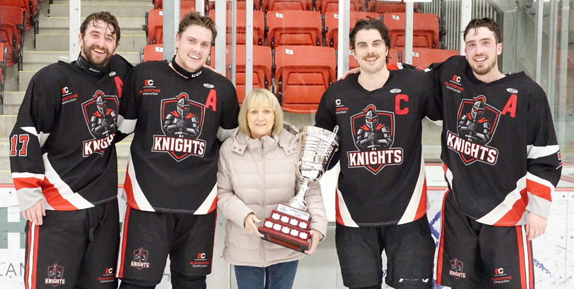 From down 2-0 to start the best-of-five Cape Breton Division playoff series of the Nova Scotia Senior A Hockey League, the Cape Breton West Blackstone Knights reeled off three straight wins to hoist the Vince Ryan Memorial cup.