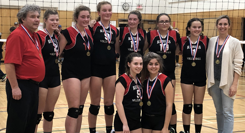 Undefeated hosts of a 12-team tournament at Inverness Education Centre Academy on Friday and Saturday, the Rebels won a close match in the championship game, defeating the Pomquet Pantheres 25-14, 23-25, 17-15.