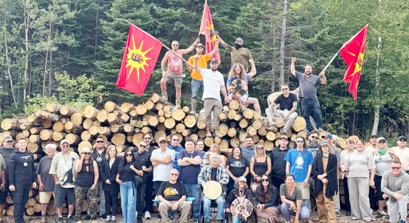 Mi’kmaw protesters and their supporters gather on Hunters Mountain in defiance of the Nova Scotia government’s omnibus bill that includes a change to Crown Land Act that would make such demonstrations illegal.