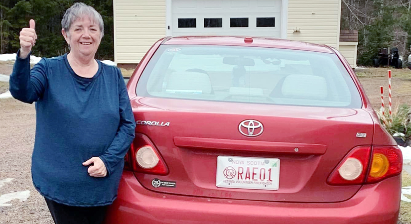 The retired deputy received the new NS retired volunteer firefighter plate from Access Nova Scotia in Port Hawkesbury when they became available on February 17th.